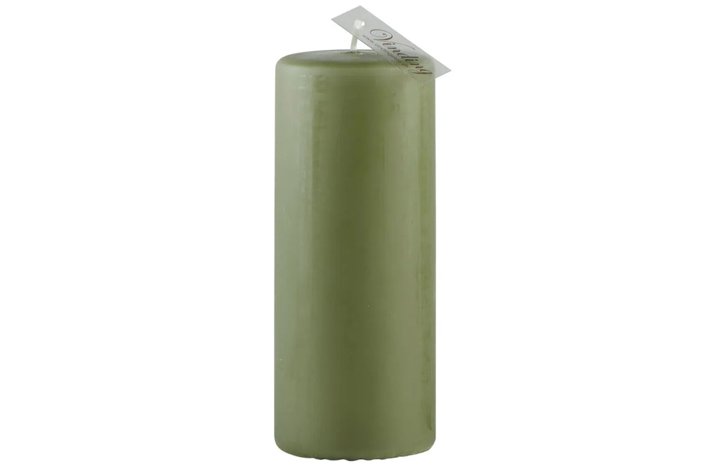 Bloklys fra Vinding i støvet oliven. Overdyppet og fremstillet i 100% paraffin, hvilket giver mindre sod og os fra lyset. Brænder jævnt og fint.